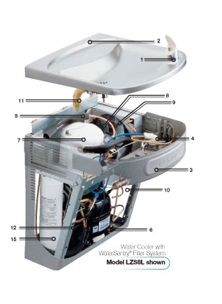 blended into the pliable plastic prevents bacteria from multiplying on the surface of the bubbler. Standard on all models with separate push-button, push-bar, or Easy-Touch Controls.